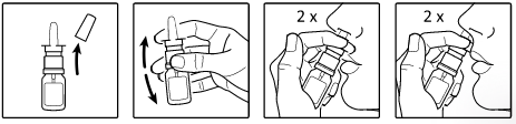 Pihustada2 korda mõlemasse ninasõõrmesse, 3-4 korda